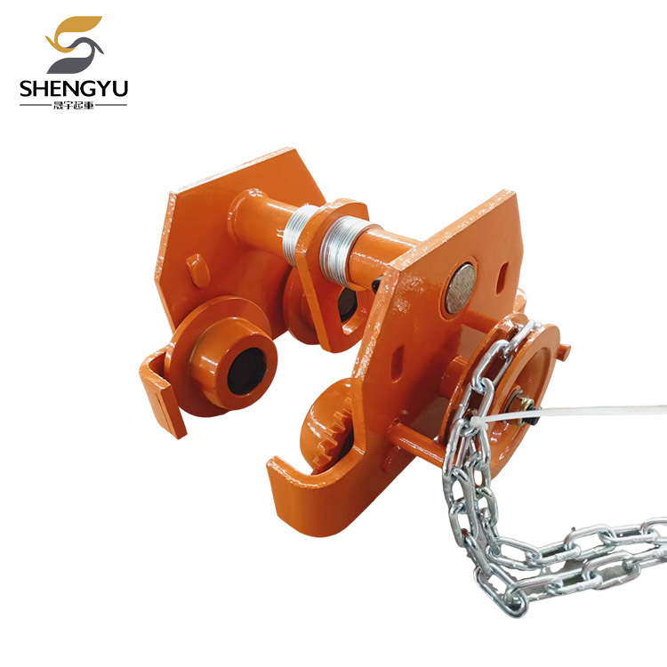 يتم تشغيلها بواسطة سلسلة يدوية، وتتحرك على طول الحافة السفلية لمسار I-beam. عندما تكون مجهزة برافعة سلسلة، فإنها تكون بمثابة نقطة تعليق متحركة لمعدات الرفع. بهذه الطريقة، لا تستطيع العربة المجهزة رفع الأشياء الثقيلة عموديًا فحسب، بل يمكنها أيضًا تمكين الحركة اليسرى واليمنى للأشياء الثقيلة.